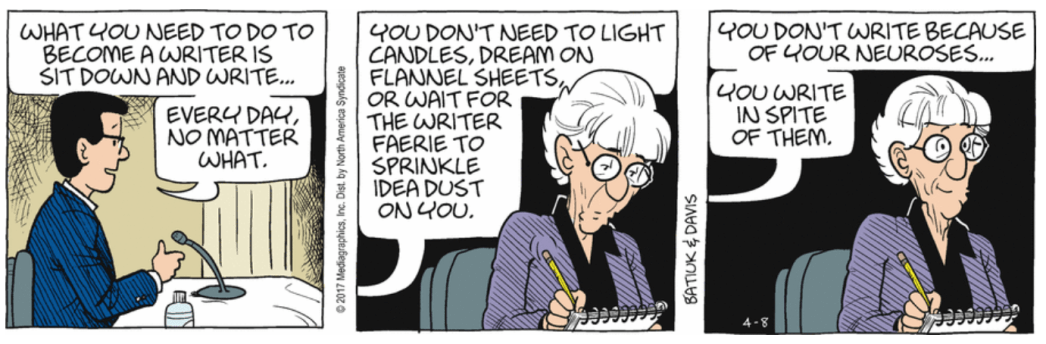 This strip is the dumbest in the entire arc. And it makes me so darn mad. Batiuk always has characters come up with ideas via random free-association. Like this is the highest form of artistic inspiration. Can this happen? Yes. But ignoring that the best ideas can come from a long, thoughtful analysis shows why Batiuk wasn’t able to push his own art very far.