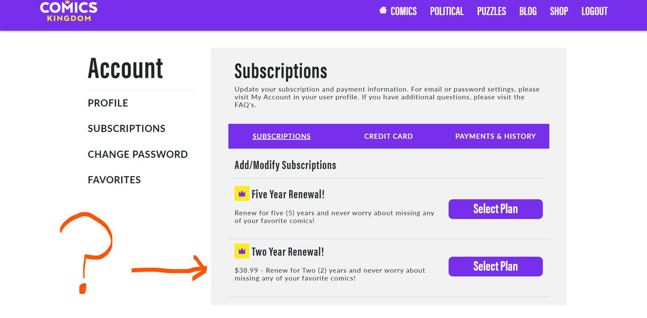 I took Comics Kingdom up on their April Fools Day Sale last year. One free month trial then $19.99 for the year. After the service underwent massive sh*tification, I elected not to renew. I may have reupped for $19.99 but the CK refused to negotiate. It frightens me that they still have my credit card info.
