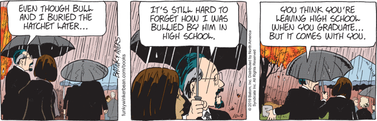 The Bull CTE arc was a perfect example of BatScam “addressing an issue” while deftly sidestepping even a mild whiff of “controversy”. Then, after an arc that did little more than make Bull an even bigger buffoon than he was previously, he had a) Les disavow thirty years of friendship and amends, then b) had Bull’s “best friend” hit on Linda, for no apparent reason. The hatred Batiuk had for Bull was just so palpable, which was always so weird to me, given how it was a character he himself created and all.