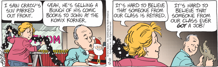 12/18 Crankshaft: Really, an Elon Musk/Twitter joke? And it’s this? Perfect example of Batiuk trying to write topical jokes 11 months in advance, and then never updating/editing them to reflect more recent events. The agedness of the joke adds a lot of subtext Batiuk probably didn’t intend.