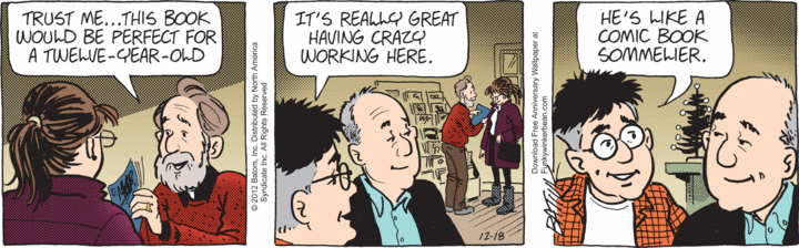 Tom, obsessive nerd to obsessive nerd, I get it. I have spent many a night browsing the FleaBays and Amazeons looking for obscure out of print books, only to weep at the price. So this is relatable to me. Me and maybe two other people. Not your core demographic of my mom. This is the kind of joke that works for a mid 2000’s web-comic read only by other weirdos, not a nationally syndicated strip.