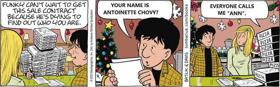 If it’s got the same interior desecrations (bad wordplay actually intentional) and it’s operated by a different shnook who’s the same lousy businessmen Funky and it has the same customer base of dough-head suburbanites who let muscle memory guide them to the same gas-station quality pizza served in the same oppressive setting, closing it was a folly. The last arc of Winkerbean should have been touched off by Funky selling the place to Pete.
