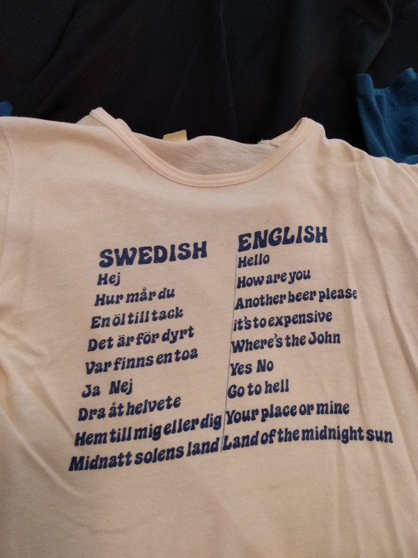 One of the gifts I took home was a t-shirt with usable phrases in Swedish.