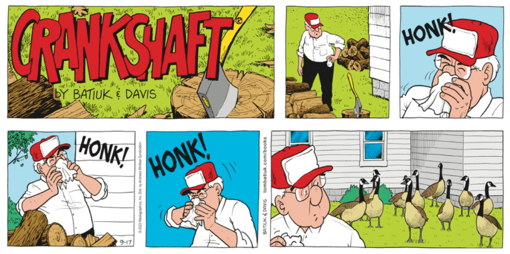 Which proves that Batiuk is sensitive to the “Where’s Crankshaft?” criticism. He’s forcing Crankshaft into places he doesn’t need to be – and where his presence wouldn’t be tolerated.