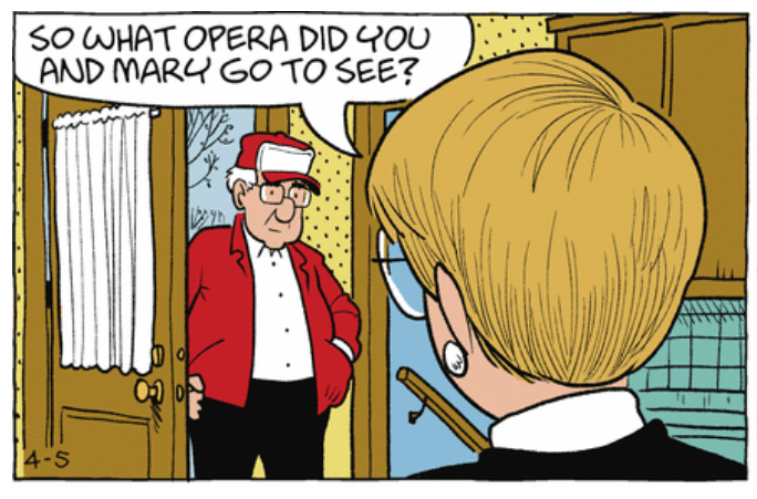 When people mentioned “Crankshaft is present in the strip but as a bystander” the first thing I thought of was when Stupid McJerkface was going to re-open the Valentine. Crankshaft stood around like some kind of worse cigar-store Indian, completely inessential to what was going on. He could have been erased and the strip would be a fraction improved. (I don’t think that happened this year, though.)