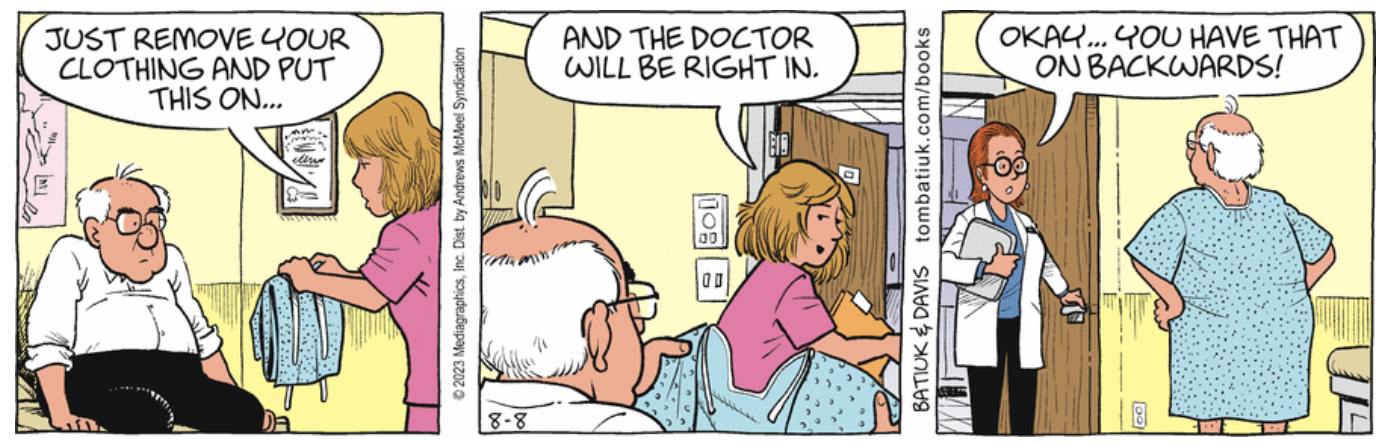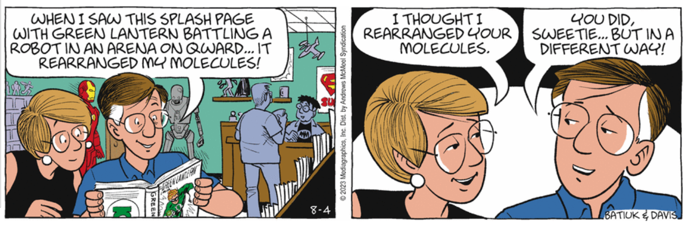 Oh, is that what this week is about? I figured he saw a Christopher Nolan movie 11 months ago, and realized he doesn’t need a punchline if he puts the panels out of order. And it’s more writer-y!