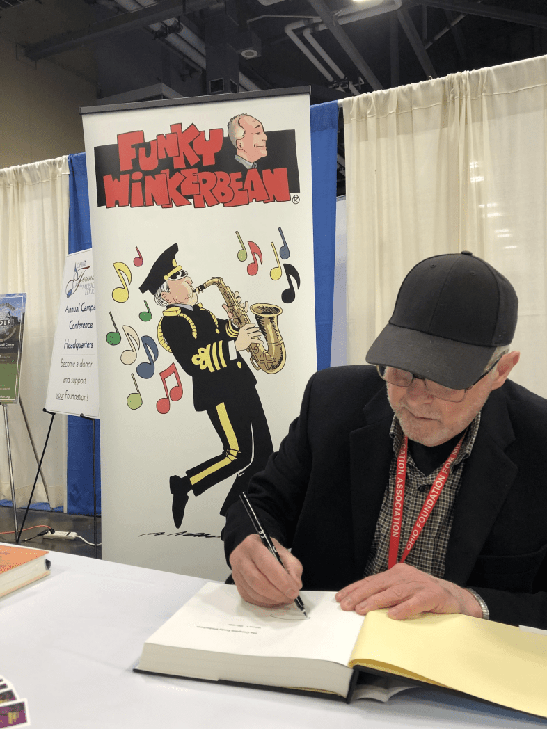 Still here? Okay, then this is partly on you. [So sue me, this self-deprecating humor is actually working for me. I’ll take this.] My first bit of ”news” is that a few weeks ago I did my initial 2024 book signing for The Complete Funky Winkerbean Vol.13 at the Ohio Music Educators Conference.