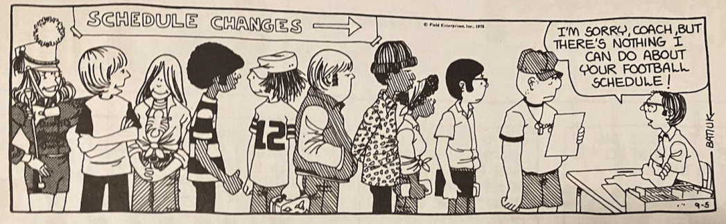 1. I was going to praise you for forcing yourself to read and research TB’s Funky Winkerbean. Yet, these are the good years! He is funny. He is on his “A” game. He breaks the 4th wall like a professional. His smirks are hilarious. CBH, thank you for buying a new/used book.