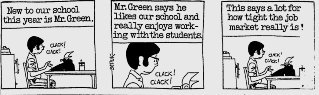 Mr. Green would eventually inherit the principal position at Westview during the Act II to Act III time skip. A position he would hold until the end of the strip, appearing for the last time on November 22, 2022.