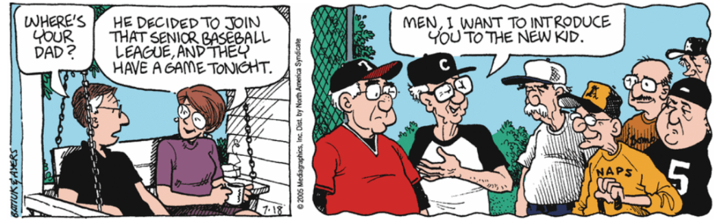 For those of you new to the Crankensphere, Cranky’s been on a senior baseball/softball league for nearly 20 years, giving Davis plenty of clipart to select from this week. We’ve even already had a week of Davis, senior baseball material in 2017. Looking at those gives a good indication of how far his photoshop efforts have fallen off.