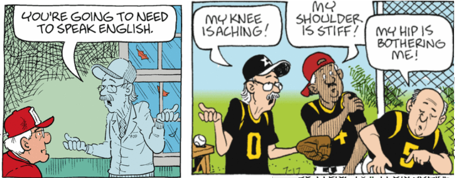 Well this is quite the clip-art twist to wake up to. The question is though, was the guy in those baseball strips positively identified as Pop Clutch? Based on the recap CBH provided last September (Poppin’ and Lockin’ | Son of Stuck Funky), for the most part Clutch was described in past tense and at least retired from his audacious bus-driving career (with one off-mention of being murdered by hearing aids, though that could be Cranky’s exaggerations). It’s a little redundant to ask since baseball in the Funkyverse is so flexible with Cranky’s timeline for playing and the merger of the two black ballplayers, but is there any precedent for Pop Clutch to even want to be part of a baseball team?