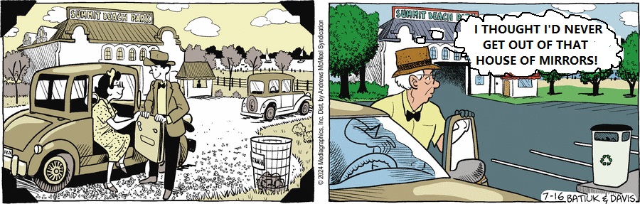 If nothing else, after the constant barrage of Funkyshaft comics antics and one-note Ed behaviors, it feels a little refreshing to get a Lillian arc that dives into her notorious backstory of ruining her sister’s life. Batiuk may’ve put a big advertisement for his book into the text yesterday but you can look up a fair chunk of the climax of that saga for free on GoComics, and it was at least as interesting as whatever soap opera’s usually on the morning hours TV. Taking it relatively slow too, you don’t see that too often.