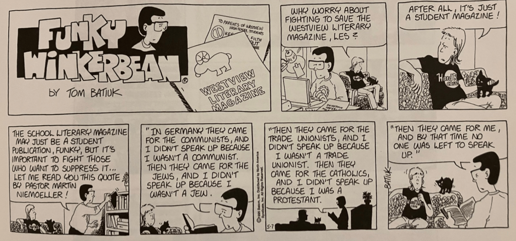 NO! Anyone who doesn’t agree 100% with Tom Batiuk’s views (of the moment) on parenting, censorship, climate damage, or comix is ABSOLUTELY WRONG, DANGEROUS, and UNHINGED.