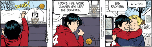 I don’t hate it. This is what CS is supposed to be–lame, not really funny jokes linked in a vague arc. Joke a day, like the first 20 years of FW. Or, you know, the last 95 years of Blondie. You read it, don’t laugh, and instantly forget what it was.