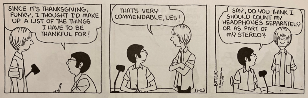 And I’m so thankful that Batiuk has promised that soon the full Funky and Cranky archives will be on GoComics so I can stop emailing myself photos of physical comic book pages.
