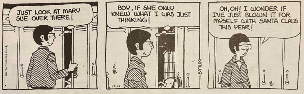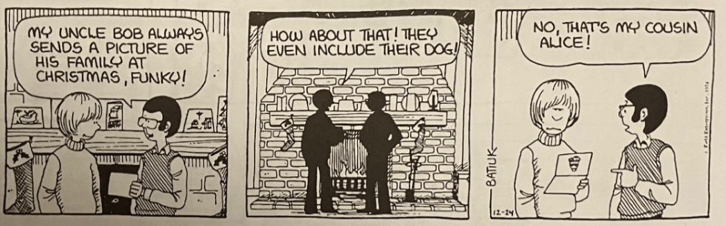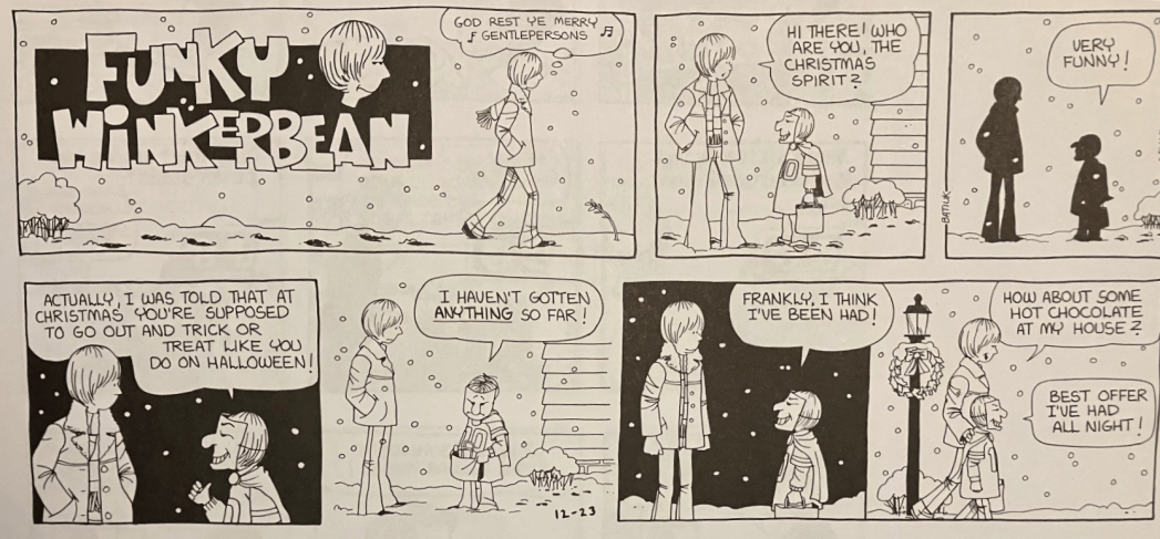 To help all of us get in the festive mood, I thought it would be fun to go back in time to the first Volume of Funky Winkerbean and pull out some classic Christmas strips to festively rate them on my guaranteed objective festivity scale.