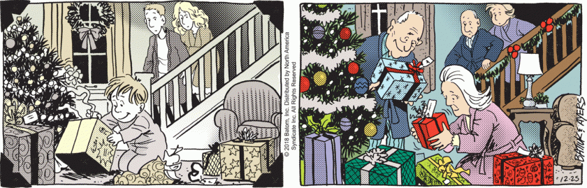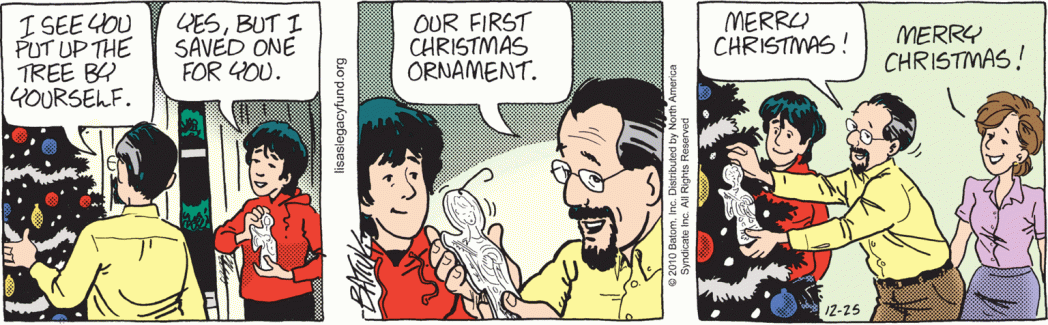 I agree with you re: the fetish objects. And I agree that the strips about the ornaments actually do work. That’s because they have a universality. Pretty much everyone in the world has some beloved holiday tradition attached to some object. It’s very easy to identify with the emotions someone has around a treasured Christmas ornament that reminds them of holidays past.