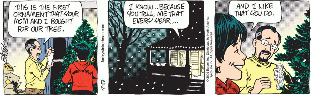 Odds are, these were the first Christmas ornaments Tom Batiuk and his wife bought back in 1971. So of course he put them into the strip.