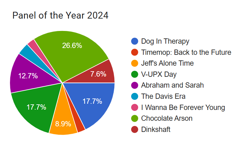 In the years (years!) since we started doing year-end awards, the Panel of the Year award has become a favorite of mine. Picking candidates requires turning on a slightly different, abstract part of the brain. And narrowing down the list can be as agonizing as it is esoteric. A week after I posted the voting, I went back over the list, thinking of the rejected panels, and was still second guessing myself. But I couldn’t give you guys literally 20 to choose from.
