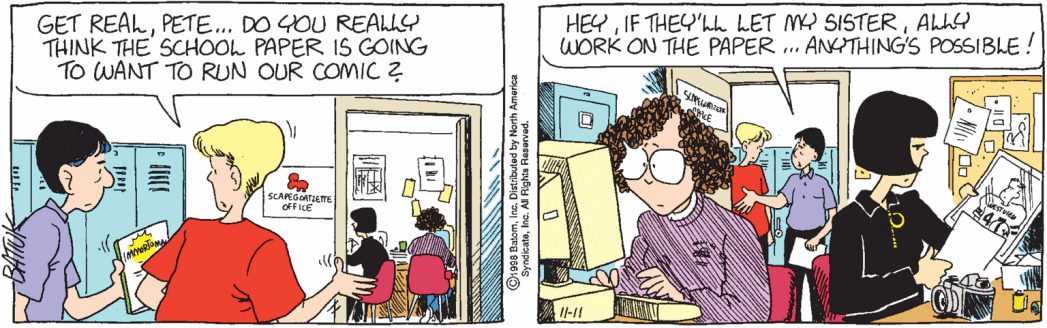 Did Batiuk just crack his inner schoolboy in two and slap a ‘neurotic’ sticker on one, then have both of them act out his fantasies for the next 20 plus years? Yes. But a consistent relationship gives the barest hint from which we can imagine a consistent inner world for these two.