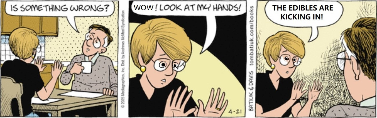 I know I’ve done this gag before, but I just think the word “edibles” is hilarious. Go ahead! Say it out loud. Edibles. Edibles. See?