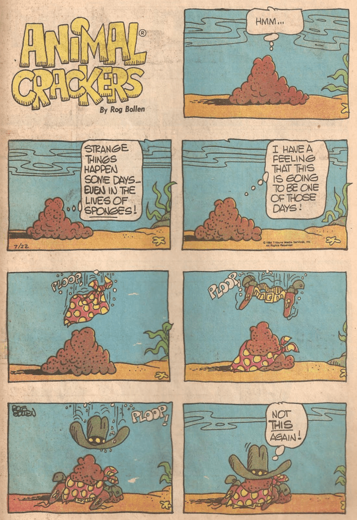 Don’t know if Rog tired of writing Animal Crackers, or simply found he was ready for a different challenge, but in the 1990s he moved out of the syndicated newspaper cartoon racket and into TV animation. If only Batiuk had followed suit in emulating his colleague there too — at least as far as leaving the newsprint game in the early 1990s!