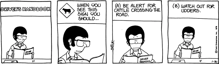 Oh, hah, wait, sorry. This is a Tom Batiuk strip, so nobody can help themselves. That’s right.