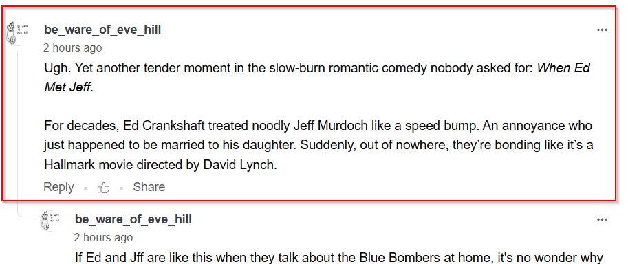 Thought and Batiuk are hostile strangers. He doesn’t realise that the whole bloody thing reminds us that he is that dough headed inner child that almost got Jeff killed. He’s asking “Can I go to a football game in freaking WINNIPEG?” and whining about being bullied when every Canadian ever asks “I don’t know…..can you?” right the heck back.