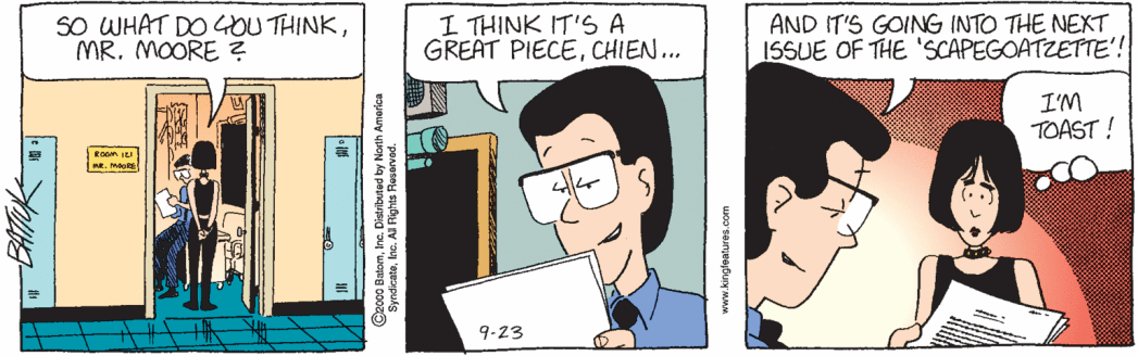 I do have to disagree with CBH. Chien shouldn’t be surprised her article was published. She wrote it in Les’s ScapeGoatzette office. She wrote in on a Newspaper computer. She turned it in to the editor. What was her expectation? (It is so rewarding to write “ScapeGoatzette”. Yet not so rewarding to type it twice! bwoeh caught me. I copied it the second time.)