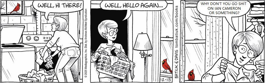 Y. Knott’s “a bird landed on my window and I made a week-long arc out of it” example below is exactly something Batiuk would write along these lines.
