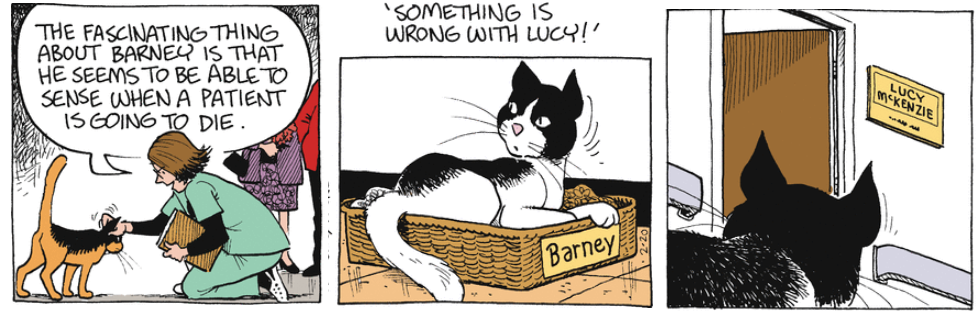 Maybe it’s Barney, the cat that knows when someone is about to die!