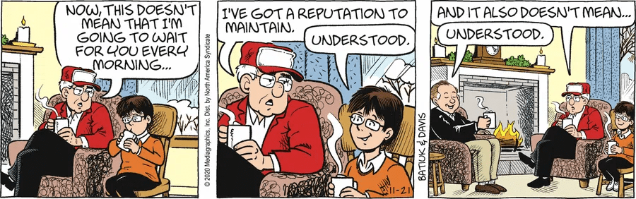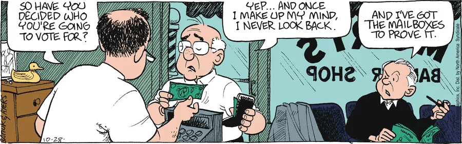 In 2006 and 2007 we get some strips of both guys talking politics at Mort’s barbershop. I don’t know if there’s earlier instances of these sort of interactions.
