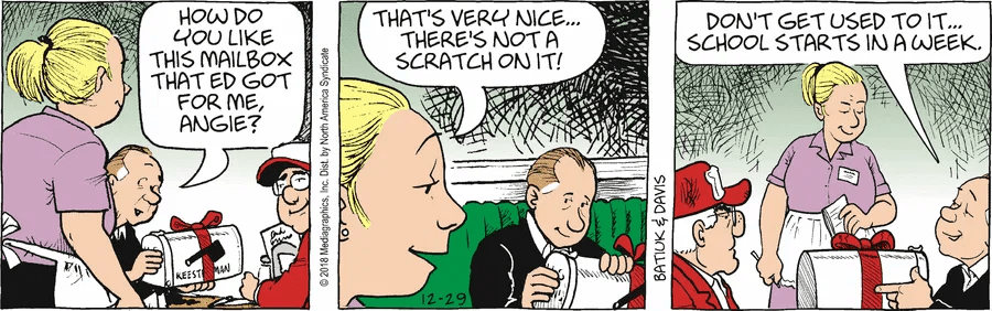 Mailbox arcs continued into the Davis era, but with the gradual de-assholification of Cranky, we eventually get a kinder, softer, mailbox flattening.