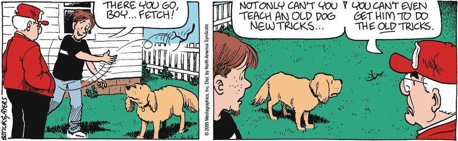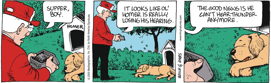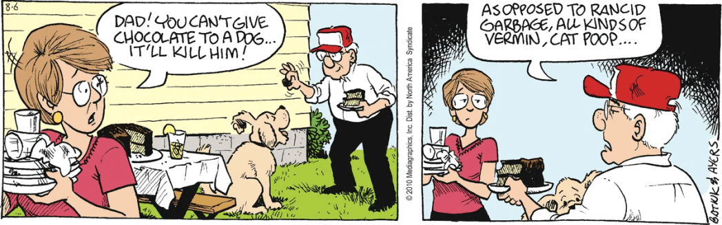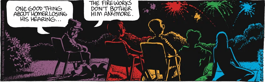 We wouldn’t be asking ‘Where’s Wally Jr.?” or ‘Wait, who the f**k is Pickles?’ or ‘Does Mitch even live with the Murdochs anymore?’ if they had been placed in the background or foreground where appropriate. I will say Ayers was better at this with Pickles up through the early aughts, where the cat is often drawn just standing around in the yard while Ed yammers about his brand new combine harvester. But there’s a million million yard strips where he could have doodled ol Homer to remind us that the dog still exists.