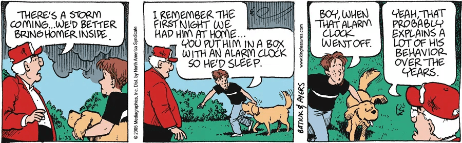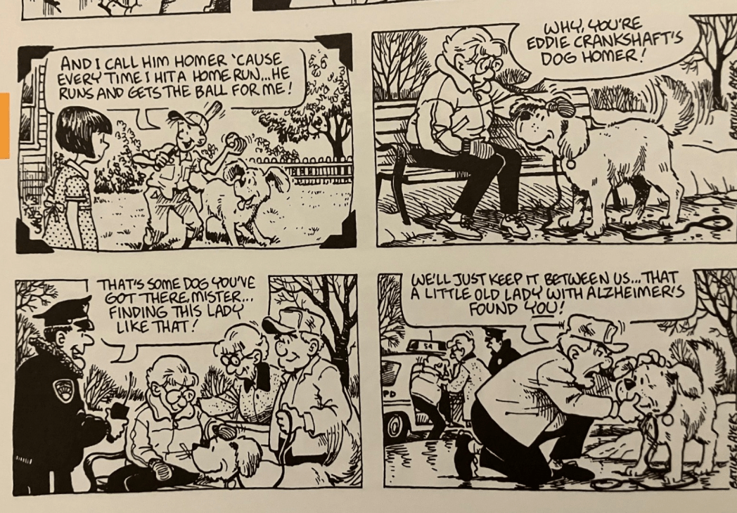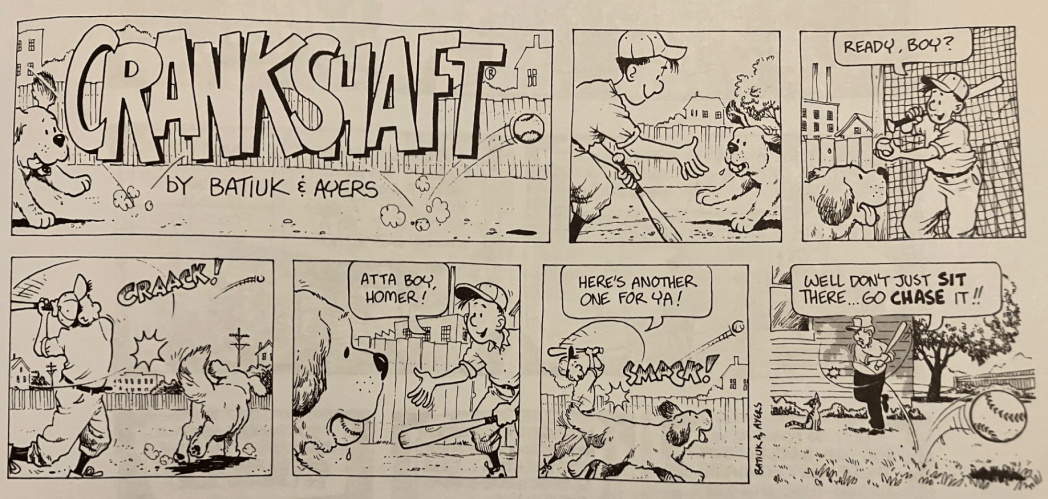 Homer isn’t in the first four Crankshaft books, so they must have got him after, maybe sometime in the early to mid 90’s if Mindy’s age in this strip from Strike Four! is anything to go by.