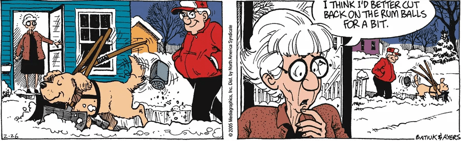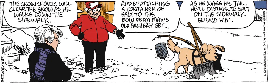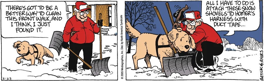 21 years ago Crankshaft enslaved his elderly dog and forced him to shovel snow. The GoComics coloring monkeys decided the sight was so horrific it turned Pam’s hair white.