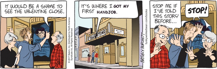 They raised money through a combination of crowdfunding, and what was implied to be a grant from some kind of movie theater preservation group. (Because Tom Batiuk can never say anything directly.)