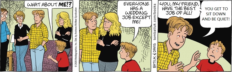 So I don’t begrudge Max and Hannah their “I do”s, or Pam her emotional reaction. The overall story is idiotic, but Batiuk captures a genuinely nice moment here. Despite them getting married at their accountant’s suggestion, Max and Hannah aren’t doing this for selfish reasons, and seem to truly love each other. And if it’s true that Max is based on Batiuk’s own son, then I’ll give them the benefit of the doubt.