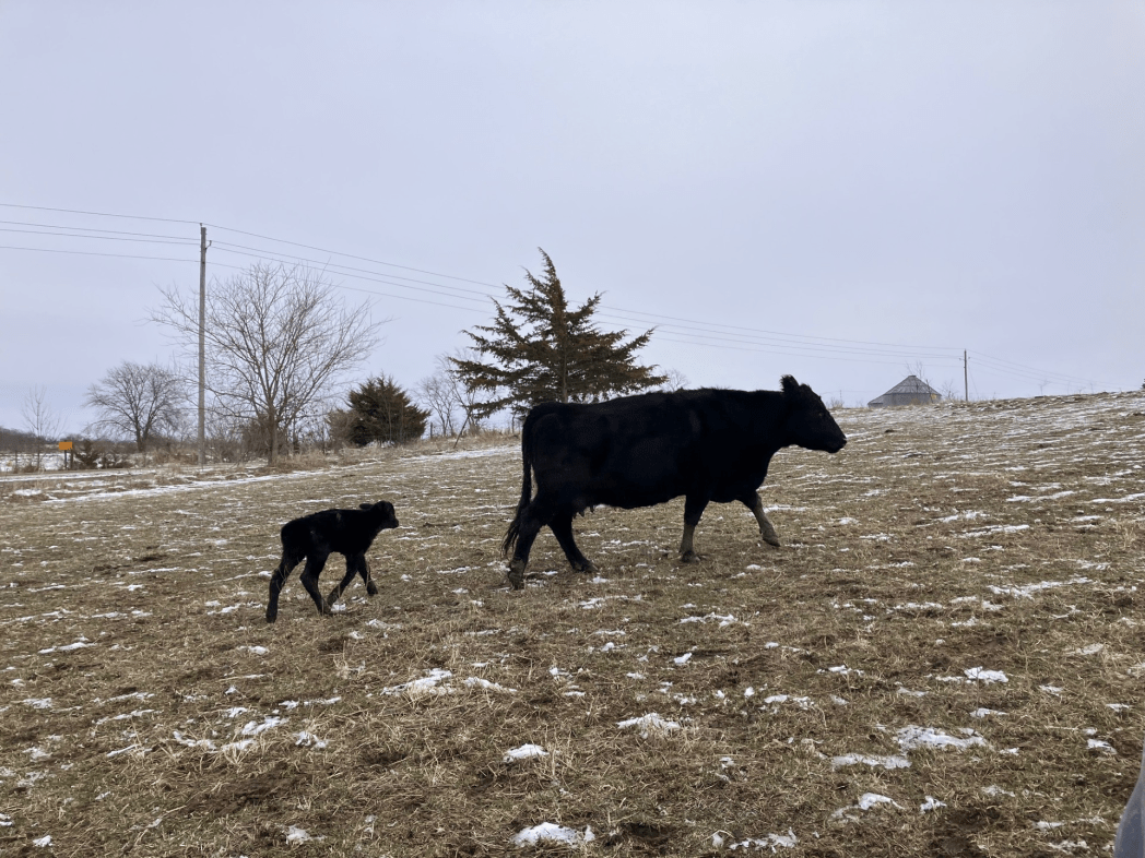 Had our first calf of the year on St. Paddy’s Day, on a day barely warm enough to leave it out on pasture. We’re up to four calves today, including a widdle moo with widdle Ray Bans.