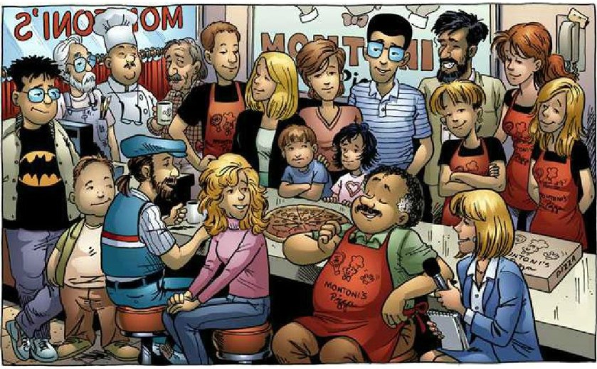 A pre-dead-skunk-head John towers over little Kevin; Crazy Harry’s coffee-swilling ass had already imprinted to that stool at the counter. Donna has since turned into one of FW’s interchangeable dumpy middle-aged blondes.