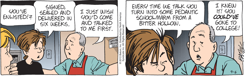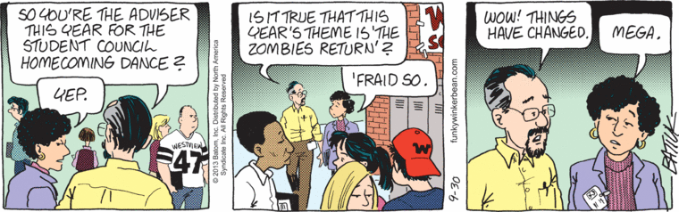 (bat·ick·shuh·na·ry) A place to define words and phrases that, while never spoken by people in real life, are casually uttered by characters in Funky Winkerbean.