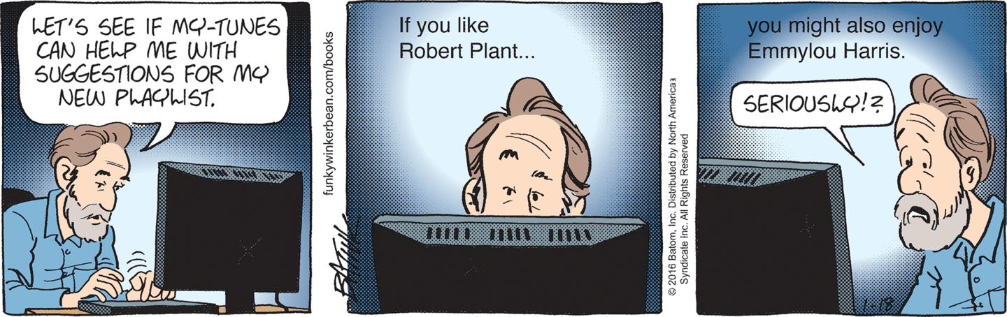 A “My-Tunes” playlist which might feature artists such as Emmylou Harris, but which should exclude presumably harder-rocking artists such as Robert Plant.