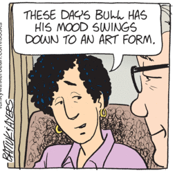 Then I looked up, and right there, November 2014, I found the arc where Bull had been offered a college coaching position, only to have it snatched away from him when the college’s first choice called back. And I was stunned to see that, five years ago, Batiuk thought to include a strip where Bull and Linda include their children in life decisions. Probably the last time Jinx has spoken in strip.