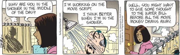 In today’s strip Les, appropriately, puts all of his stolen Hollywood paraphernalia in same place.