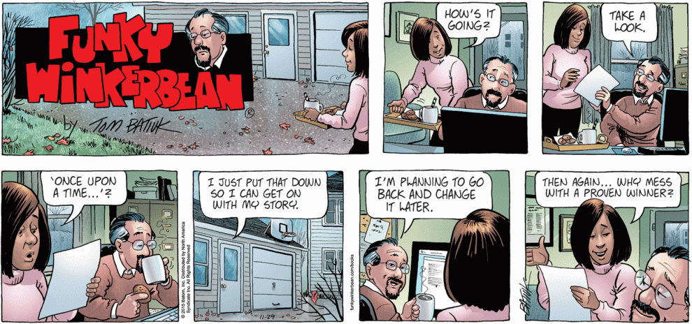 Why am I blandly narrating this strip in lieu of hard-hitting commentary and rapier wit? Because I know my limits. Why is Les blandly narrating his actions in the first panel? Because there is no limit to his disdain for even those that worship him.