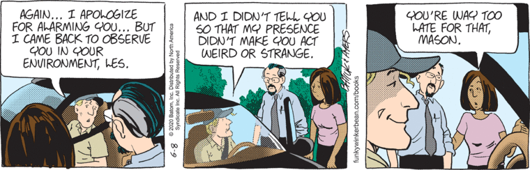 Coming next week: Les is mildly surprised to learn that Cindy carved “Mason + Cindy 4 Eva” into Mason’s chest with a Swiss Army knife corkscrew while he slept. No one else is.