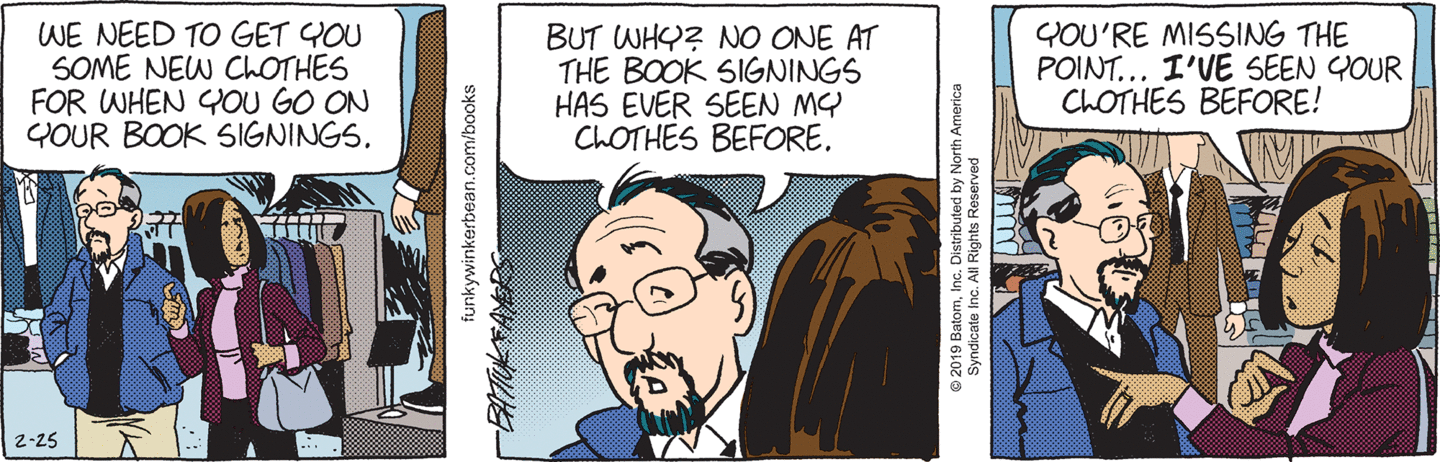 Actually going to commend the artwork today, relatively speaking. The ruler did a lot of the work, but there is good attention to detail for once. In the background at least. Les is drawn as a sightless abomination talking out of his ass, but I’m guessing that’s Ayers subtle caricature of him. And putting up the porch swing in spring not only sets the season, it’s a subtle callback to the strips way back in June 2011 when Cayla and Les confessed their love on it. Batiuk may forget how many kids his characters have, but he seems to always remember that Les has a front porch swing.