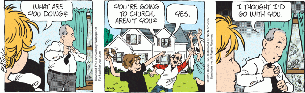Maybe Funky has an excuse, he thinks churches are places to practice driving, but Holly has been depicted as at least a somewhat regular churchgoer.