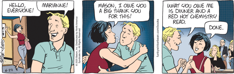 Way to pad the strip out with oversized dialog-free panels where nothing happens, Pulitzer (nominee) Boy. “This is what a real casting session looks like!”…big f*cking deal. I assumed it looked something like that but I never cared enough to verify it, so thanks there, Tom. “Only to see”…there’s a gag so old and so musty he had to spray it with Pledge before he used it. There’s only one word that aptly describes this one…”duh”.