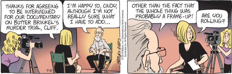 Today’s strip was not available for preview, so we’ll all just have to wait for midnight Eastern time to see how Cliff’s hallucinations of Sam Spade prove Brinkel’s innocence or something.